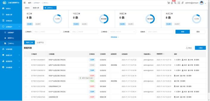 制定全面维保计划,定期巡检与预防性维护,涵盖报修、巡检、维保等全流程工单管理、备品备件、远程维护等全生命周期可视化管理。