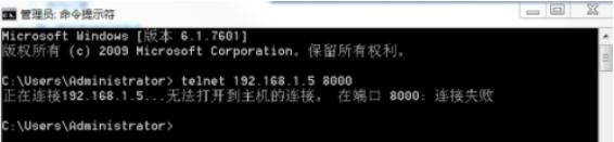 telnetip 端口,此图为端口不通的示例,如果端口通后会进入一个黑色框中。