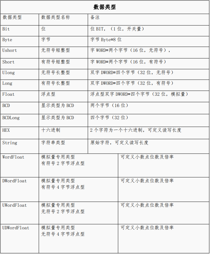 下载中心 视频中心 常见问题 售后服务 工业网关 设备快线 数据云平台 联网设备 问答百科 网关支持采集的数据类型有哪些? 时间:2022-10-26 09:39:53 点击:5911 关键词:工业网关,数据采集,数据类型 问题:网关支持采集的数据类型有哪些? 回答:网关支持采集的数据类型如下表 : 上一篇:工业智能网关会运行时会自动重启怎么处理? 下一篇: 网关采集modbus协议设备时,寄存器类型和地址如何选择?